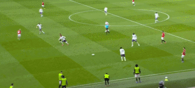 第38分钟,曼联球员B费禁区前沿过顶长传,达洛特右路插上,停球之后起脚劲射,皮球高出横梁。